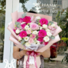 Bó hoa được gói trong lớp giấy trắng cao cấp kết hợp nơ hồng tinh tế, mang phong cách trẻ trung nhưng vẫn rất thanh lịch. Đây là mẫu hoa lý tưởng để gửi gắm những cảm xúc ấm áp, lời chúc ngọt ngào hay sự quan tâm tinh tế dành cho người nhận.